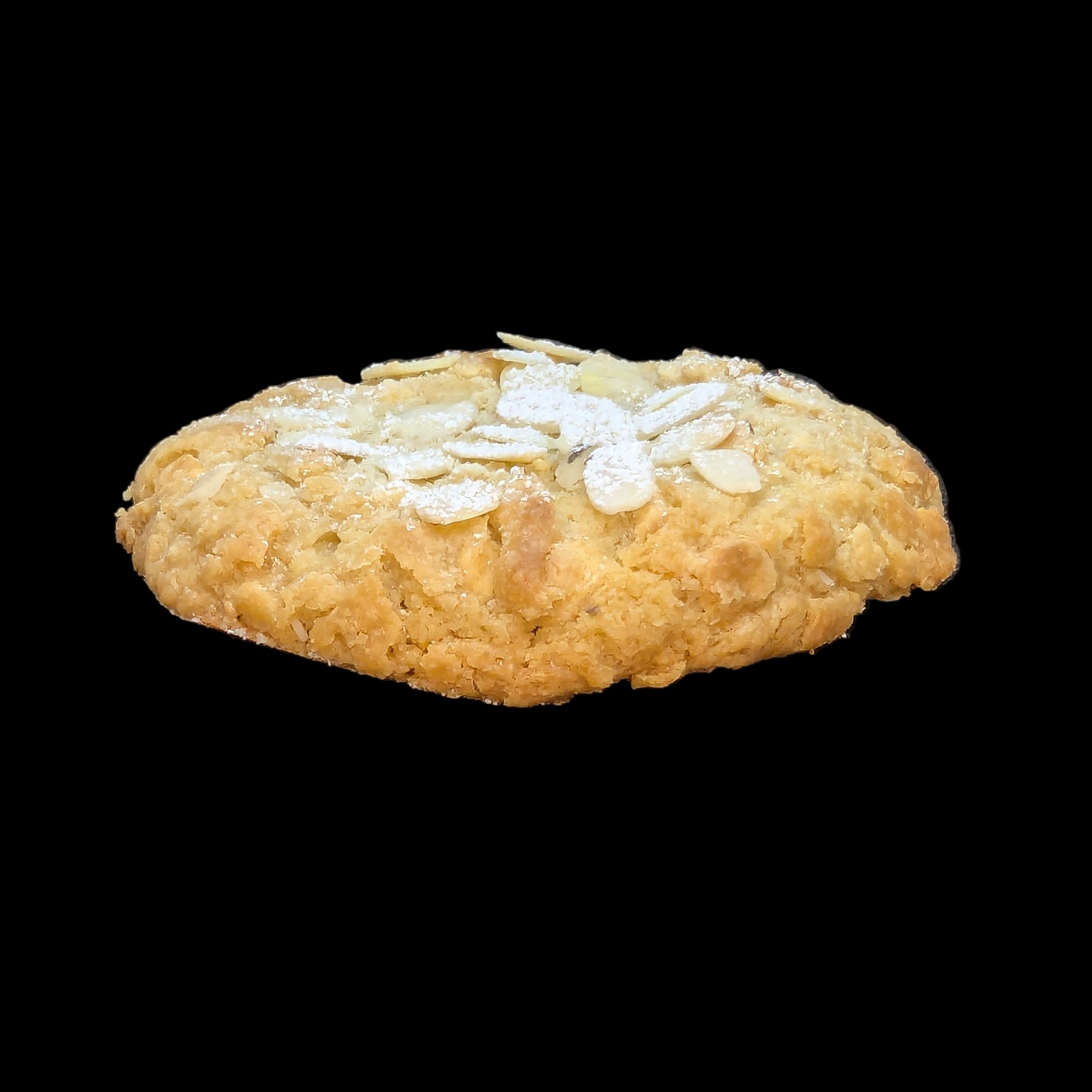 Packed with creamy white chocolate chips with a splash of almond extract - sweet like cherry, warm like marzipan, an irresistible combo. Loaded with an almond cream filling, rolled in flaked almonds and finished with a dusting of icing sugar. A dreamy choice for almond lovers.