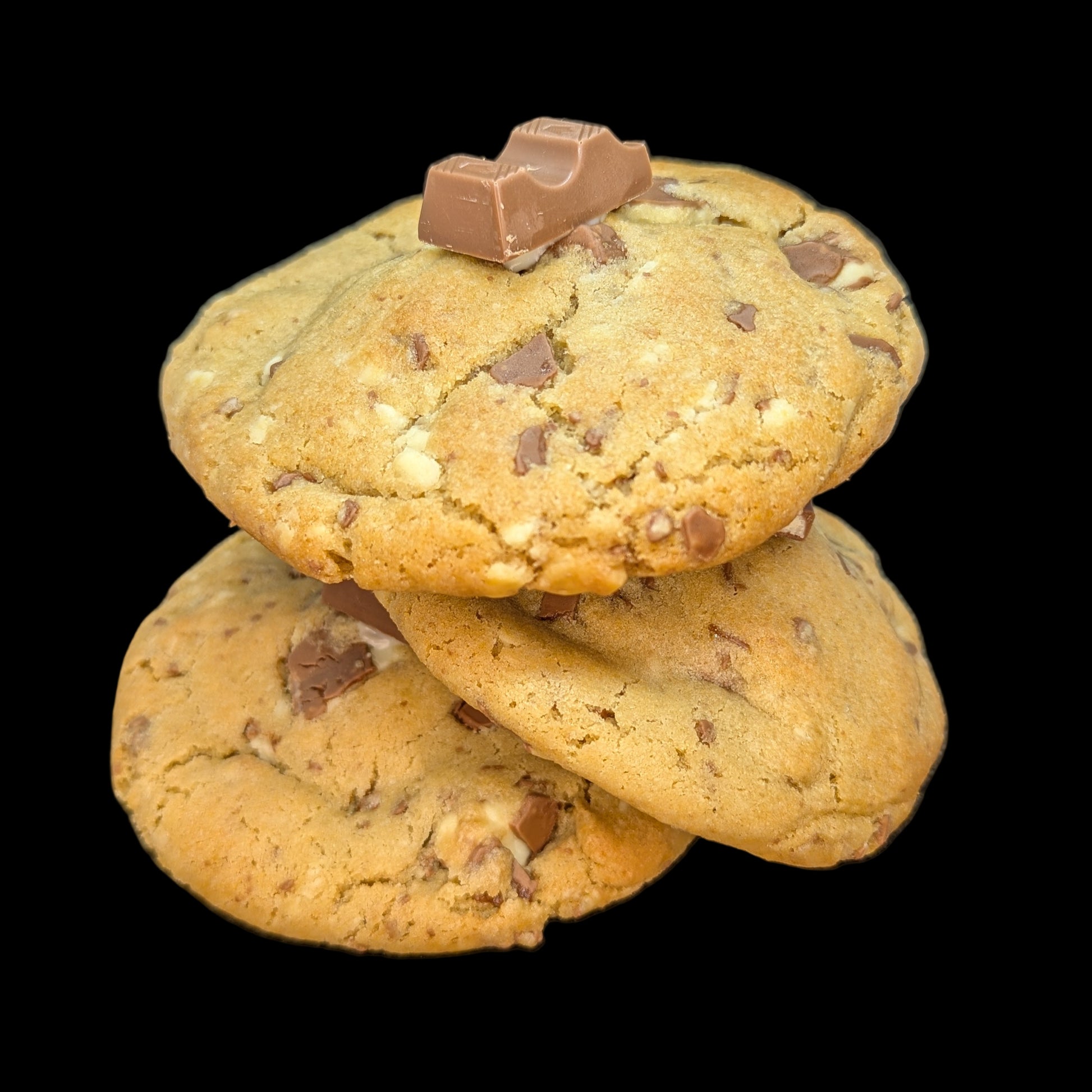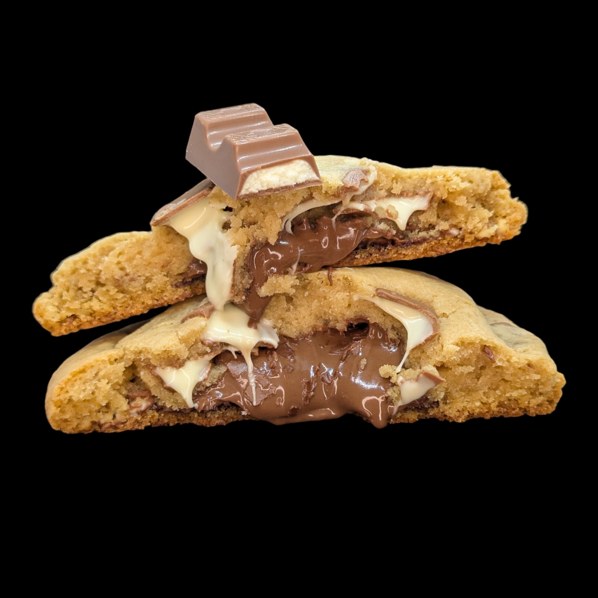 This cookie’s got all the magic - crunchy Kinder® bars baked into a soft vanilla dough, then stuffed with a cheeky blob of gooey Nutella® and topped with a piece of Kinder!® It’s the fairy-tale of cookies: sweet, decadent, and totally fit for royalty (or just your sweet tooth).