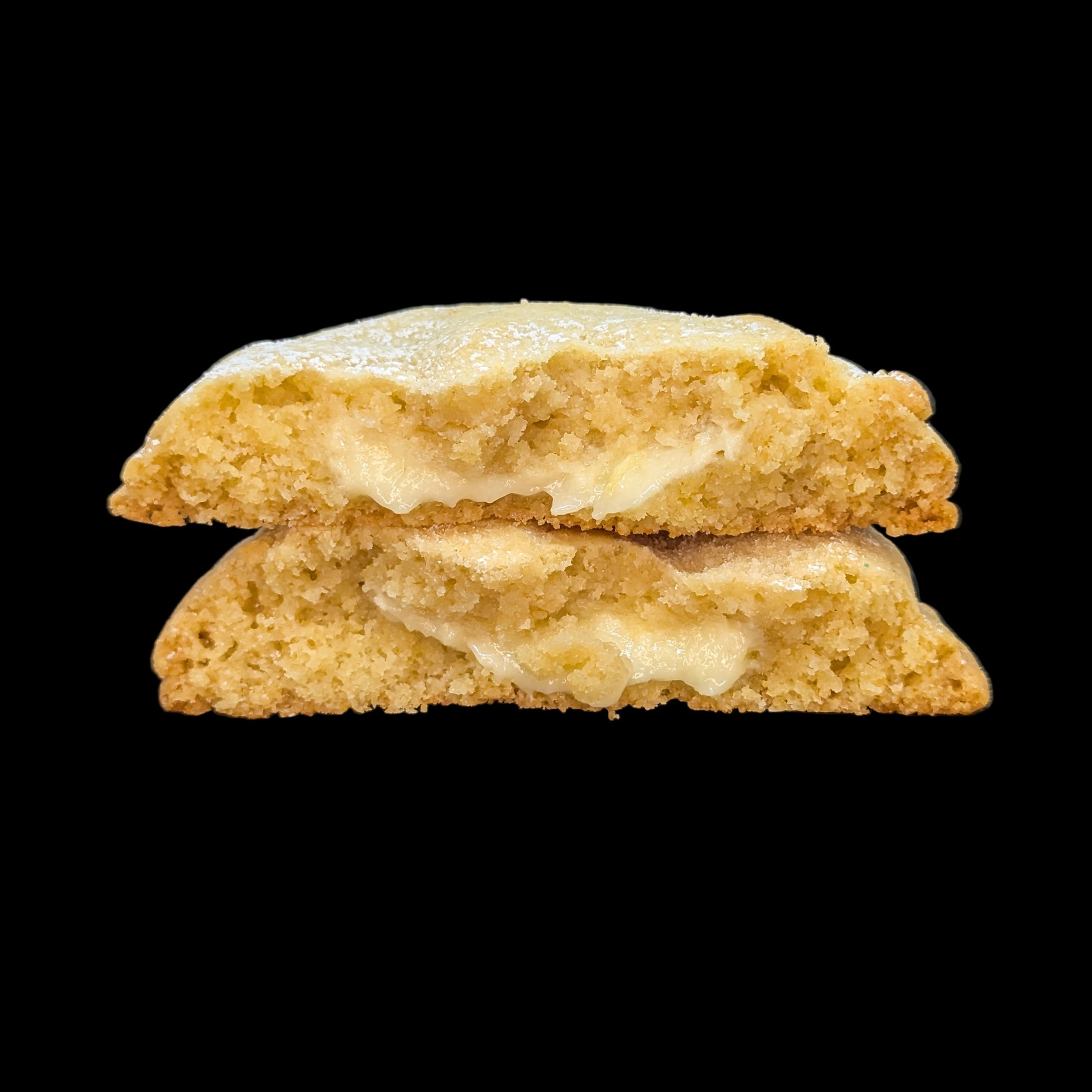 A soft, buttery cookie dough bursting with fresh lemon zest and juice, generously filled with a tangy lemon curd cream cheese frosting.